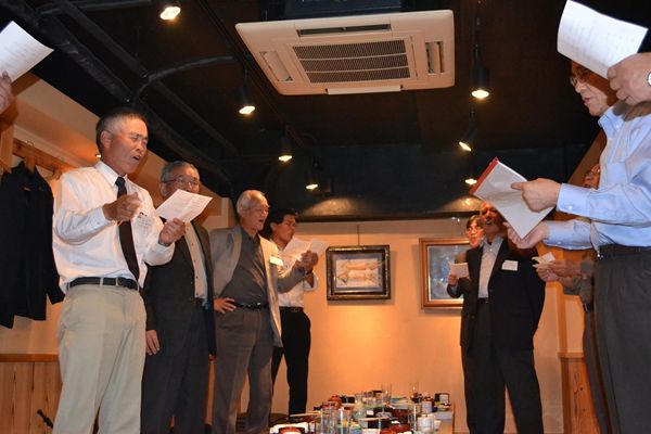 懇親会の最後は久門さん(S38年卒)が、なにやら普段の人柄からは想像も出来ない締めで校歌などを咆哮し、終了いたしました。