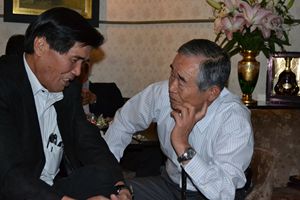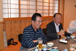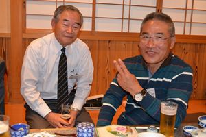 接点のないお二人ですが、先輩の前ではやっぱり緊張で正座です 右 木村武機さん 左 廣瀬泰教さん 木村さんの弟・木村哲治さんと廣瀬さんは同期です |