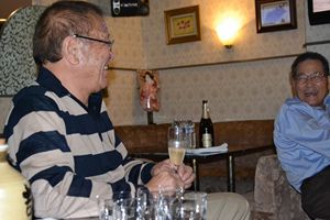 同期の桜?でもないか、ここまで来ると卒年は関係なし いい酒が飲めるのが一番最高! 左 野見山誠一さん 右 土持幹雄さん |