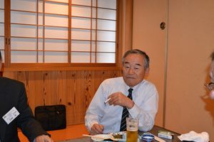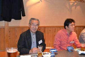 鬼木さんの自己紹介して頂き、井上さん(S36年卒)の乾杯の音頭で歓談となり、会場になっている秋葉原「三友」の美味しい料理や美酒を戴きながら、一年ぶりの顔合わせで会話が弾んだと思います。