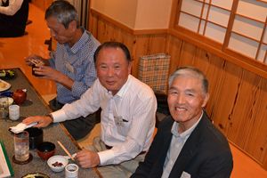 | 若い女子はどうして御大の横に座っちょるん? 逆や、御大が若い女子の横に座っちょるんよ 右手前から 野見山さん 女子 坂田さん |