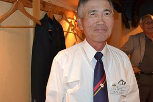 | 母校ラグビー部のネクタイと タイピンを付けて来ました 久門さんらしい服装です |